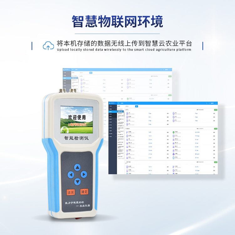 6、仪器配备4G联网功能数据管理平台,将本机存储的被测点环境因子测量历史数据无线上传到智慧云农业平台,方便用户进行数据管理和长期分析。